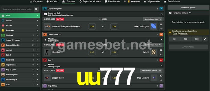 O uu777 oferece uma grande seleção de opções de apostas em e-sports com probabilidades competitivas